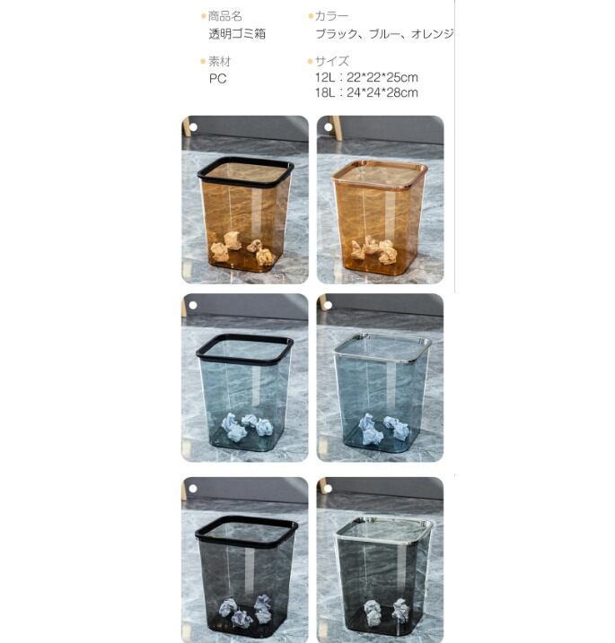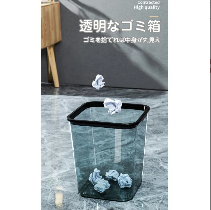 fyh-home-d01 ゴミ箱 おしゃれ 透明 角型 寝室 シンプル トラッシュ 部屋用 小さい 黒 軽量