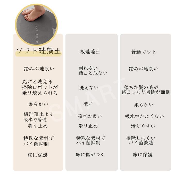 丸ごと洗えて衛生的なソフト珪藻土バスマット 吸水性抜群!