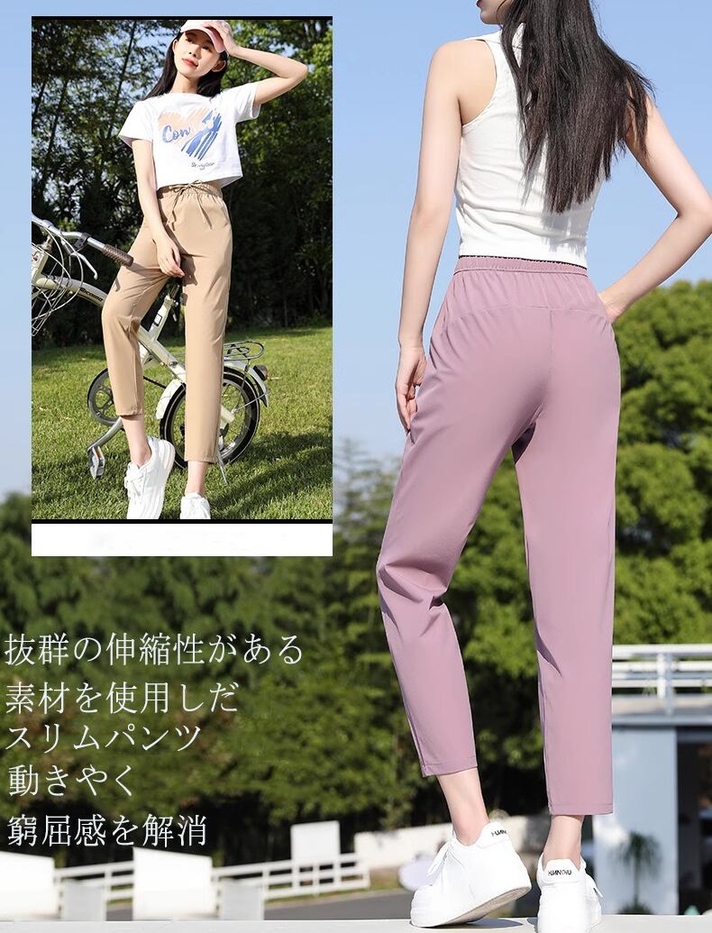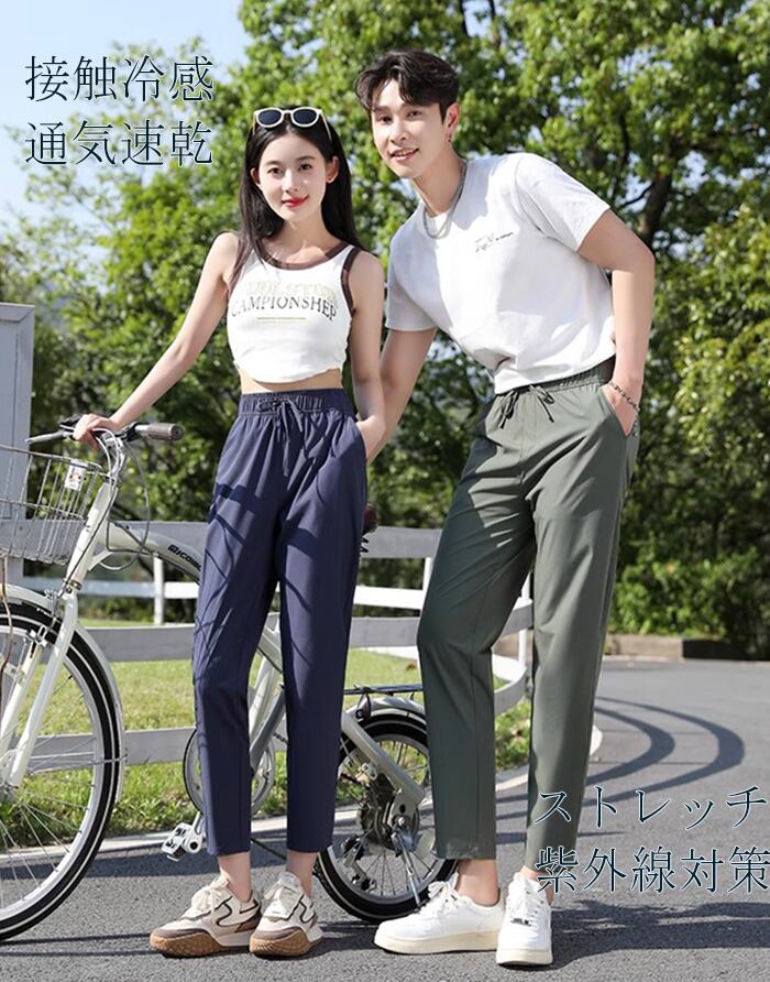 スポーツパンツ 薄手 快適 無地 ウエストゴム 調節紐 春 夏 接触冷感