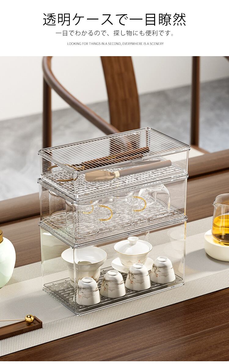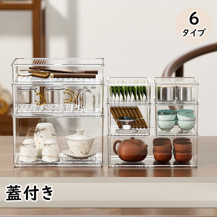 「送料無料」透明 蓋付き 収納ケース 小物 カップ 茶器 シンプル