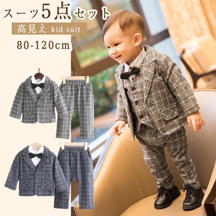 スーツ 入園式 入学式 子供スーツ 男の子 ベビー フォーマル 発表会 フォーマル 子供服フォーマルスーツ 卒園式 七五三 結婚式 フォーマルスーツ 5点セット[ジャケット/パンツ/シャツ/ベスト/蝶ネクタイ] 80 90 100 110 120cm