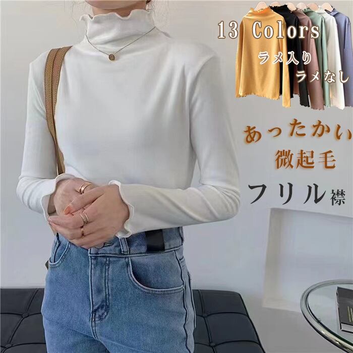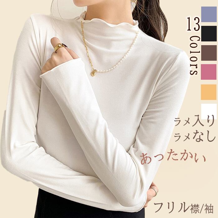 カットソー 長袖 プチハイネック レディース 春 秋 冬 微起毛 トップス フリル 長袖 ハイネック インナー ストレッチ 伸びる 柔らか コーデ レイヤード きれいめフリルネック カラバリー あったか 優れるタッチ感 きれいめ
