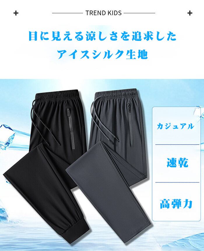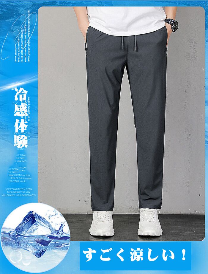 超伸縮 ロングパンツ イージーパンツ ズボン エアパンツ ファスナー付き スポーツパンツ 無地 メンズ アイスシルクパンツ 接触冷感 ゆったり 涼しい ボトムス 清涼 涼感