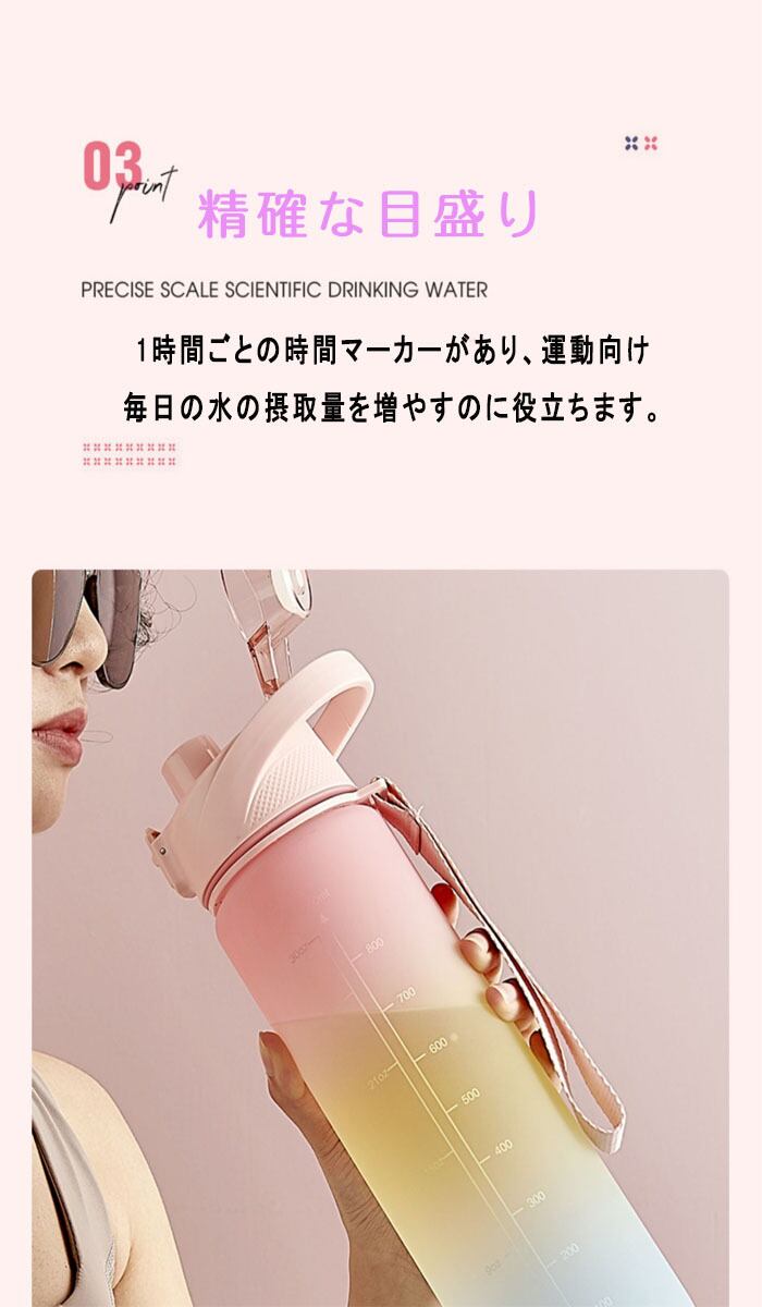 水筒1L 直飲み 超軽量 タイムマーカー 目盛り