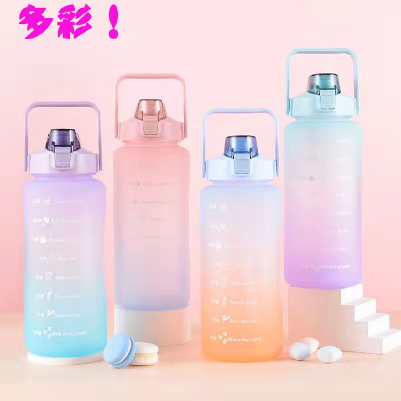 水筒 2リットル 目盛り付き 水筒 2L ウォーターボトル ストロー付き水筒 タイムマーカー 携帯便利 漏れ防止 子供 キッズ レディース 水筒