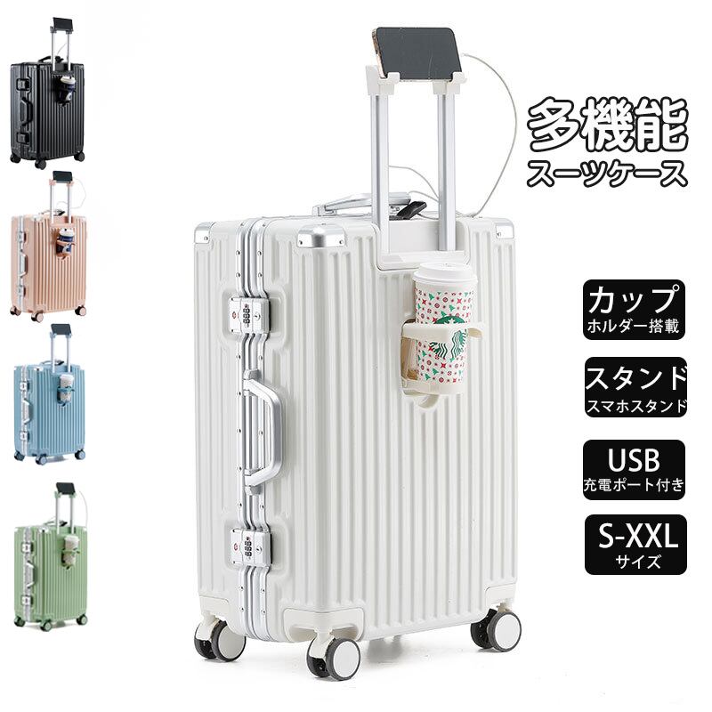 スーツケース カップホルダー スマホスタンド式 USBポート付き 軽量 キャリーバッグ キャリーケース ソフト 小型 ロック ナンバーロック ダイヤルロック ダブルキャスター 静音 消音 多機能 S M L XL XXL