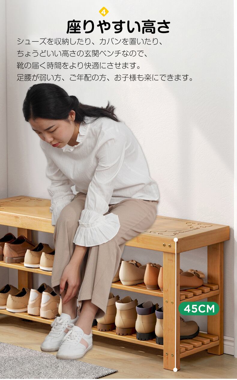 [2段 70*25*45cm]玄関ベンチ シューズラック 靴 収納 竹製 高齢者 腰掛け 収納ベンチfyh-home-xj03
