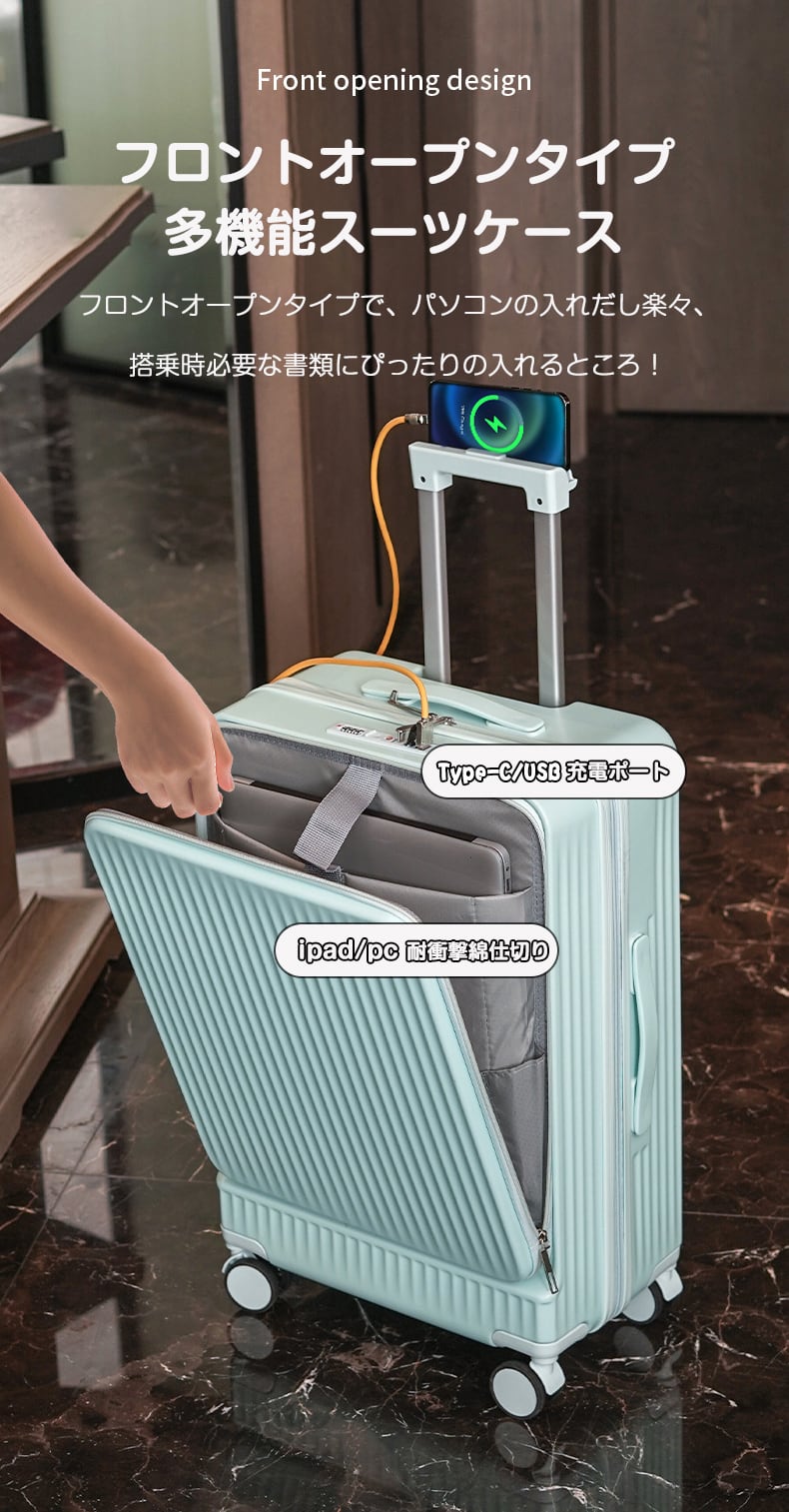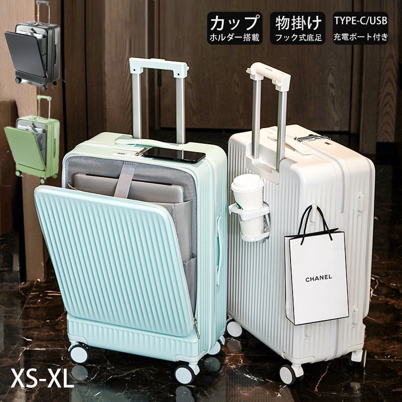 [XL]スーツケース カップホルダー 前開き 物掛けフック式底足 USBポート付きfyh-home-b07