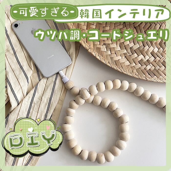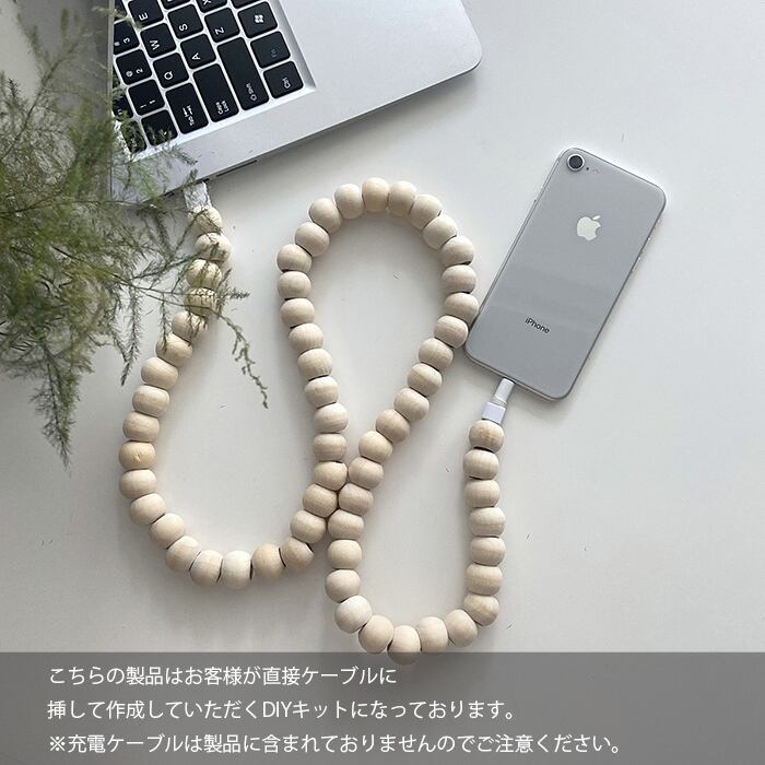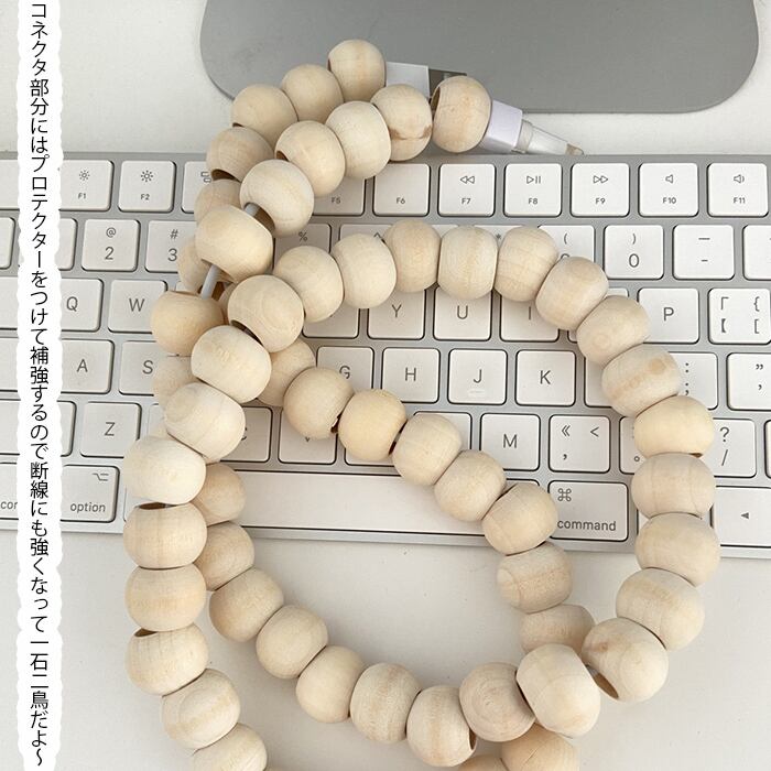 iPhone用 ウッド DIY USB コードジュエリー ウッド調 木 木製 ビーズ パール ケーブル ビーズケーブル 1M 丸 円 1メートル 保護カバー iPhone アイフォン用 スマホ 韓国 インテリア ウッドボール アクセサリー 雑貨 充電コードカバー 安全対策 ペット 噛む防止