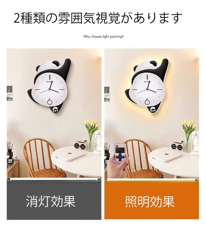 【大人気】ア レトロ ウォールクロック ナンバー 壁掛け時計 パンダ 可愛い 掛け時計 コンクリ モダン 静音 シンプル 海外インテリア おしゃれ 軽量 時計 かわいい 見やすい オシャレ お洒落プレゼント ギフト ウォールクロック 連続秒針 大型 お洒落 子供部屋