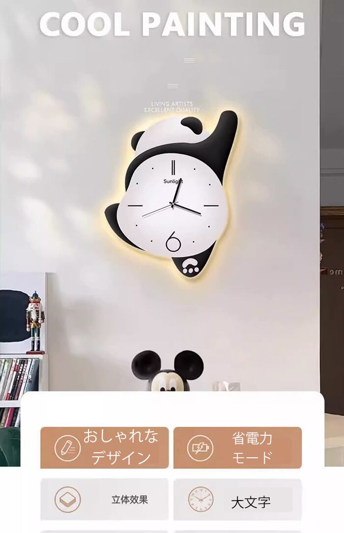 【大人気】ア レトロ ウォールクロック ナンバー 壁掛け時計 パンダ 可愛い 掛け時計 コンクリ モダン 静音 シンプル 海外インテリア おしゃれ 軽量 時計 かわいい 見やすい オシャレ お洒落プレゼント ギフト ウォールクロック 連続秒針 大型 お洒落 子供部屋