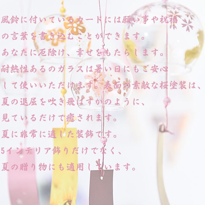 【期間限定!】江戸風鈴 風鈴 4個~10個セット ガラス風鈴 桜塗装 手作り風鈴 風鈴祭り 風鈴まつり 澄んだ音 厄除け 幸運をもたらす 涼しい感じ 夏の風物詩 おしゃれ 窓屋根飾り 室内外兼用 おみやげ ギフト 贈り物(短冊付き)
