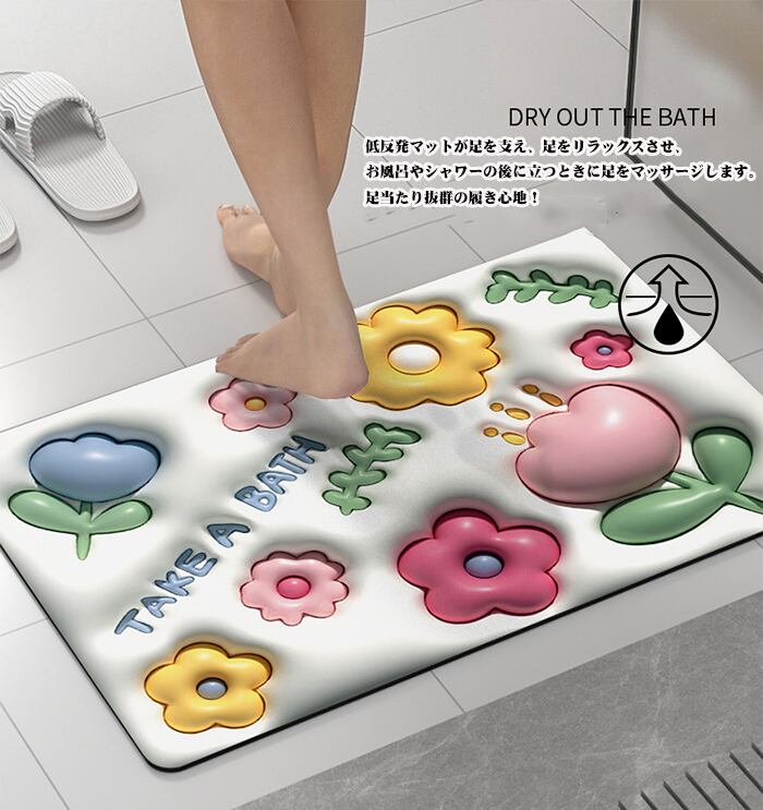 バスマット 珪藻土 立体 3Dに見える 速乾 吸水 珪藻土マット 洗える 抗菌 防臭 ぷにぷに 60×90cm ソフト 柔らか 珪藻土マット 3D視覚 バスマット お風呂マット 足拭きマット 滑り止め お手入れ簡単 浴室 キッチン 脱衣所 バスルーム 洗面所 玄関 バス用品 ペット
