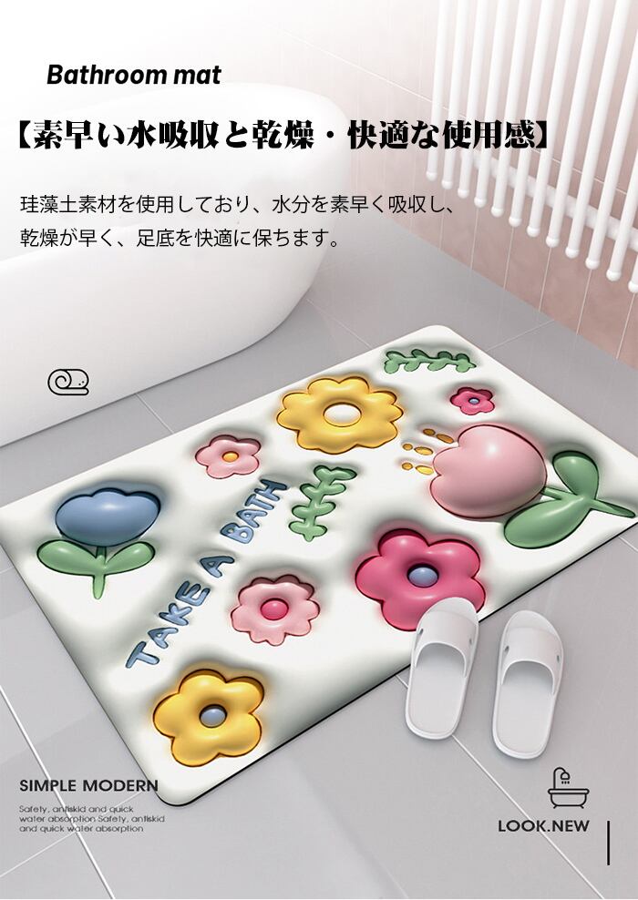 バスマット 珪藻土 立体 3Dに見える 速乾 吸水 珪藻土マット 洗える 抗菌 防臭 ぷにぷに 60×90cm ソフト 柔らか 珪藻土マット 3D視覚 バスマット お風呂マット 足拭きマット 滑り止め お手入れ簡単 浴室 キッチン 脱衣所 バスルーム 洗面所 玄関 バス用品 ペット