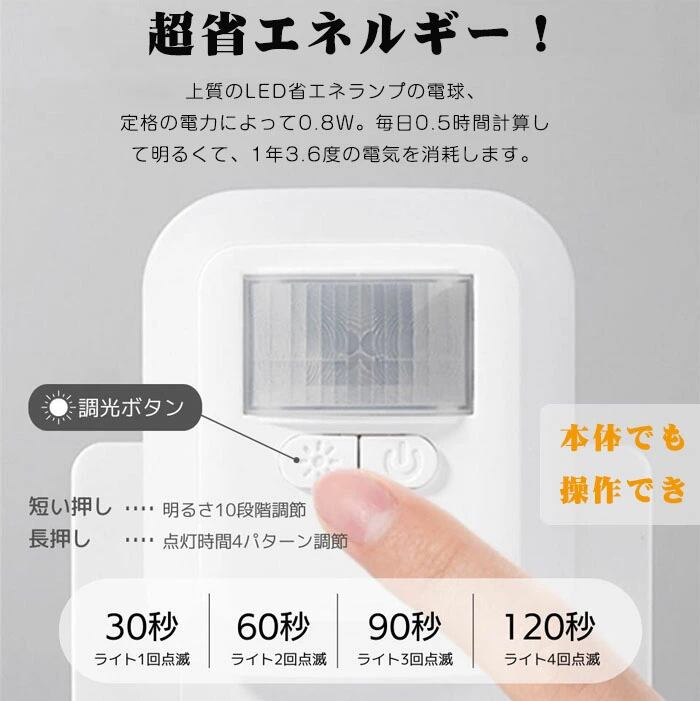 センサーライト おしゃれ コンセントライト 自動点灯 リモコン+声感+常夜灯+10段階調光+光感 足元灯 whc-light2