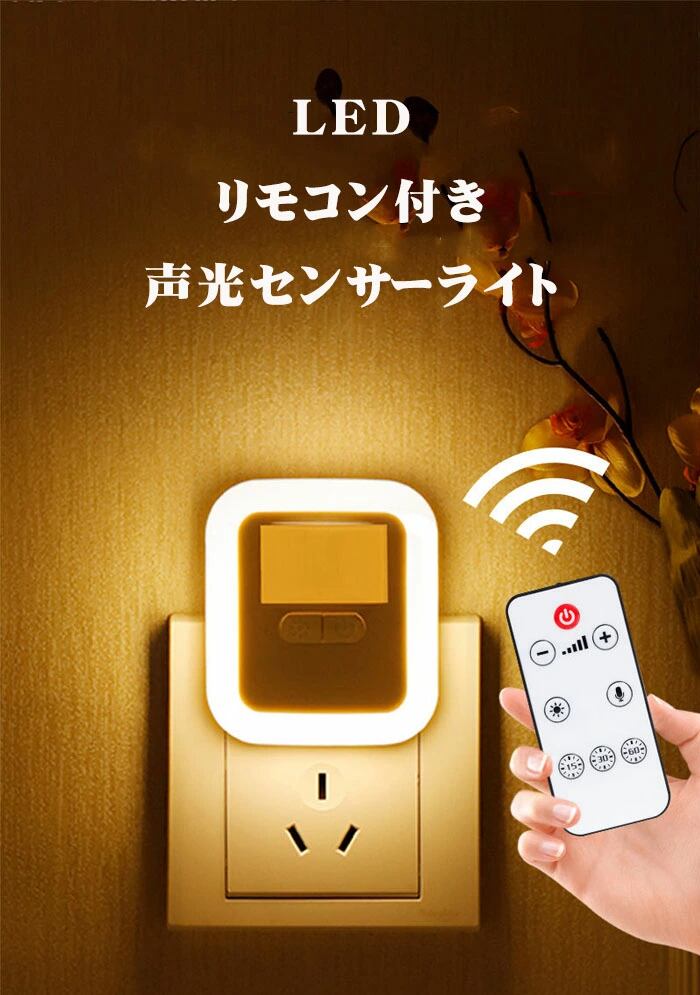 センサーライト おしゃれ コンセントライト 自動点灯 リモコン+声感+常夜灯+10段階調光+光感 足元灯 トイレ 電球色 ナイトライト キッチン 省エネ センサーライト コンセント フットライト 声光感センサー 調光 明るさ 調整 調節 自動点灯 玄関 階段 寝室 台所 コンセント