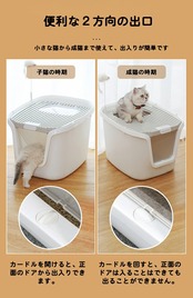【M】猫トイレ ツードア猫トイレ 飛び散らない フルカバー 大きめ 大型 スコップ付き ネコ トイレ お手入れ 掃除 広い 脱臭 zhq-pet6