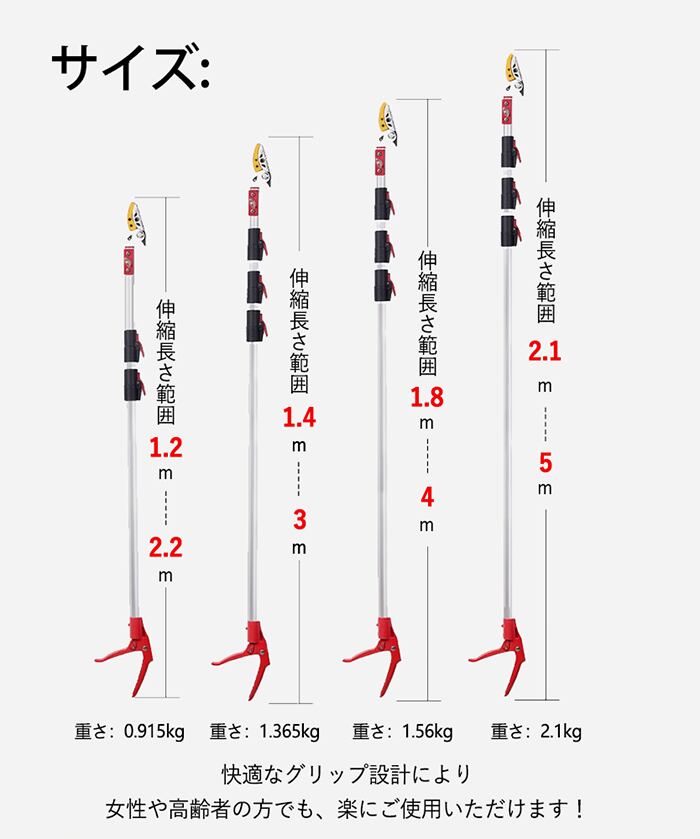 高枝切りバサミ 太い枝 ノコギリ 剪定鋏 はさみ 高枝切鋏 たかえだきりばさみ強力 高枝切り えだきりばさみ 枝切り鋏 高枝バサミ 枝切ばさみ 高枝のこぎり 高枝切りばさみ 木を切る道具 高枝 女性用 軽い ガーデニング鋏 llk-kh-04(三段2.1~5m)